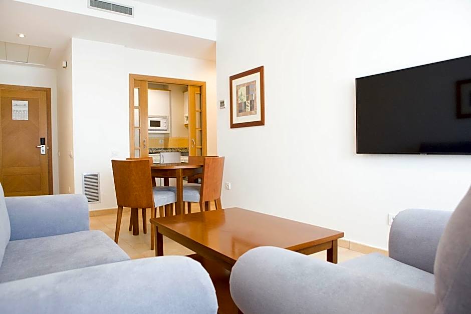 This apartment features individually adjustable heating and air conditioning, a bathroom with hairdryer, living-dining room with TV, and a balcony or terrace. The fully-equipped kitchen includes a fridge and oven.